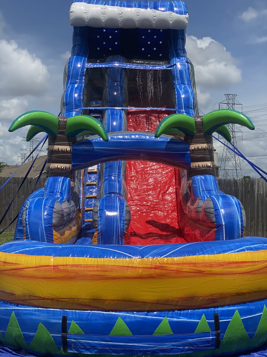 22ft Flaming Tsunami Waterslide includes an Extension Cord, 50ft Water Hose, and a Large Tarp