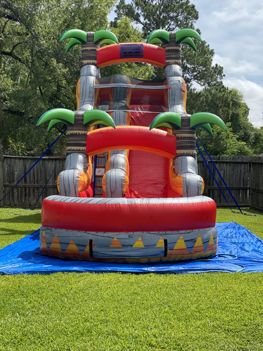 No need to pack your bags when an island getaway awaits right in your backyard! Be the ultimate Big Kahuna this summer and create a colossal splash with the Lava Falls Waterslide. Perfect for luau, Hawaiian, tropical, or even Disney's Moana themed events, this slide promises an unforgettable experience. Don't miss out on the chance to enjoy one of Houston's largest waterslides—book now and make your event a memorable adventure!